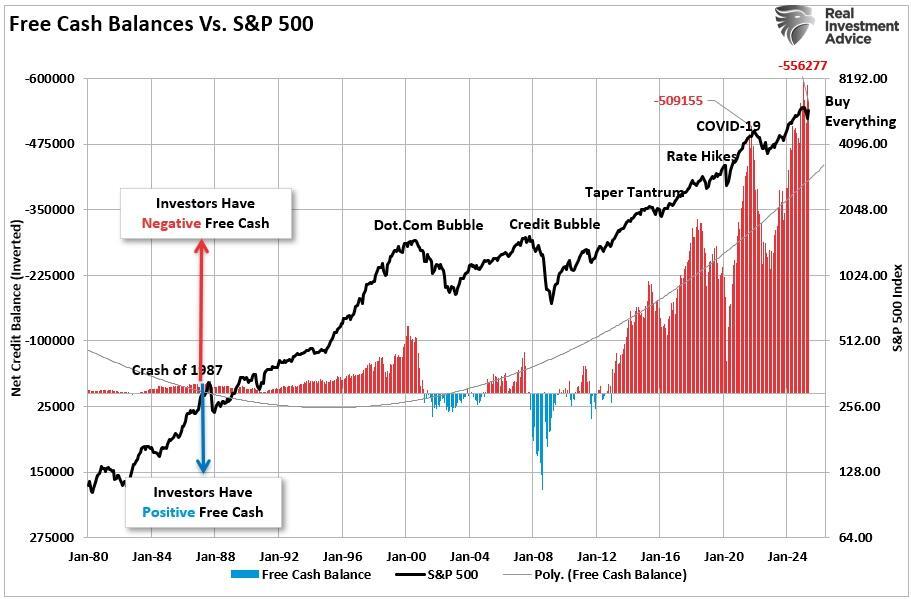 From the dot-com bubble to the meme stock mania, the behavior has remained the same. Retail traders feel invincible in rising markets, convincing themselves that the more risk they take, the more money they’ll make. As we noted then, young investors were even taking on personal debt to invest, a behavior not seen since the tech bubble of 1999, when traders used credit cards and home equity loans to speculate on stocks. Of course, these episodes ended similarly, with many small investors wiped out when markets corrected.