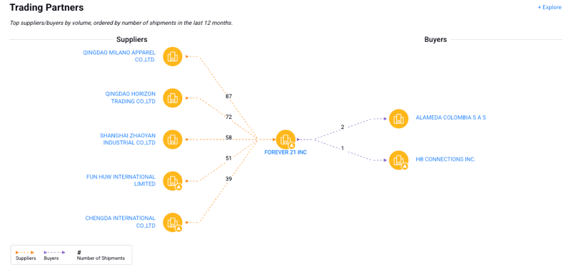 Public trade data compiled by counterparty and supply chain risk intelligence firm Sayari shows Forever 21's suppliers reside mainly in China...