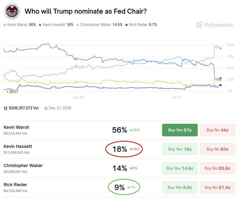 With Hassett sidelined, the race appears to be tightening around a smaller group. Alongside Rieder, the remaining names most often mentioned include former Fed governor Kevin Warsh and current Fed governor Christopher Waller. Both bring deep experience inside the central bank and would represent a more traditional choice, in contrast to Rieder’s market-driven background.