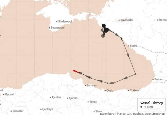 At least two tankers that have loaded oil from Novorossiysk, the Russian port on the Black Sea, have recently traveled along the Georgian and Turkish coasts instead of taking the shortest route to the Bosphorus Strait, according to the data compiled by Bloomberg.