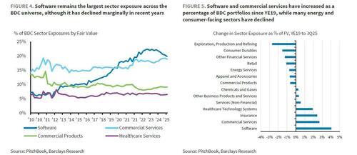 “Software is the largest sector exposure for BDCs, at around 20% of portfolios, making the industry particularly sensitive to the recent decline in software equity and credit valuations,” Barclays analysts including Peter Troisi wrote in a note available to pro subs.
