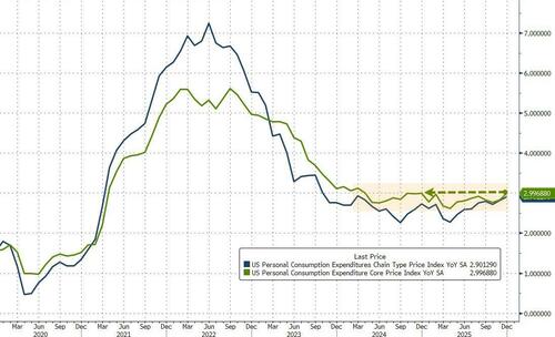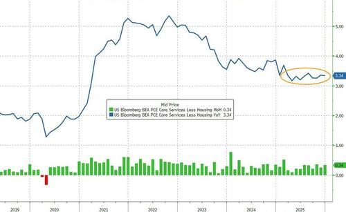 The headline PCE rose 0.4% MoM (more than expected too) driving prices up 2.9% YoY (the highest since March 2024)