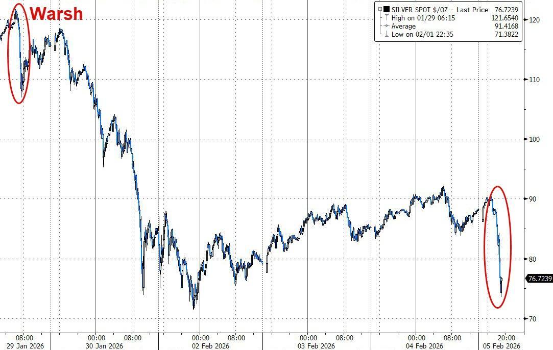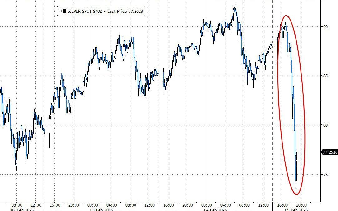 Silver Crashes 20% As China Opens, Gold & Bitcoin Also Plunging
