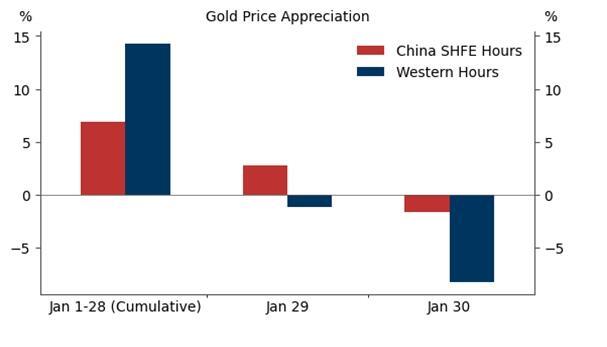 The timing suggests that Western flows rather than Chinese speculative activity drove late January's volatility.