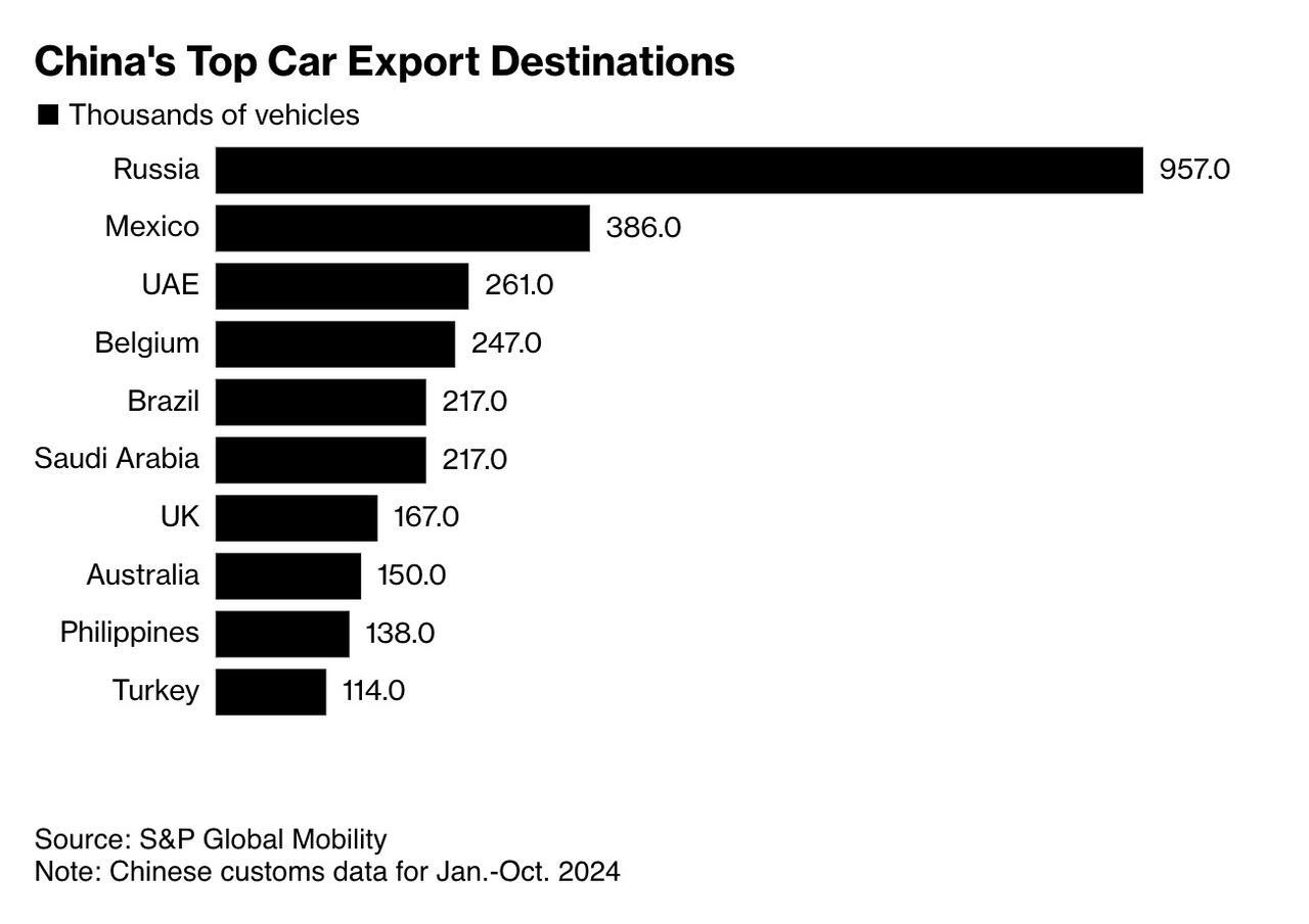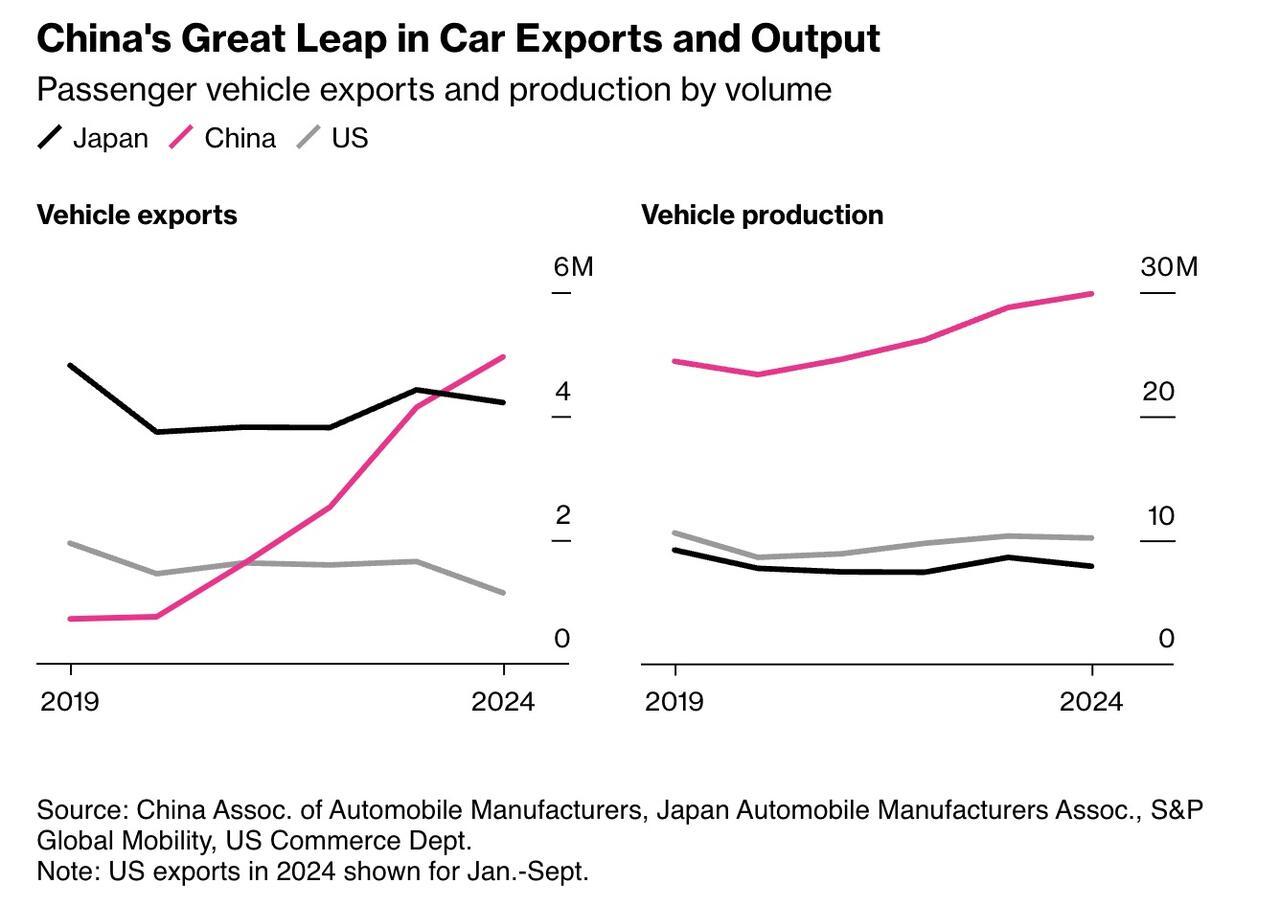 Bloomberg writes that China now leads global vehicle exports, shipping 4.9 million passenger cars in 2024—up from less than 1 million in 2020, according to the China Association of Automobile Manufacturers.