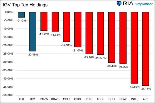 For fundamental context, we share the graph below from the Daily Shot. The P/E ratio of the software sector has fallen rapidly over the last few months, from 34 to 24. For context, the utility sector has a P/E ratio of 21.