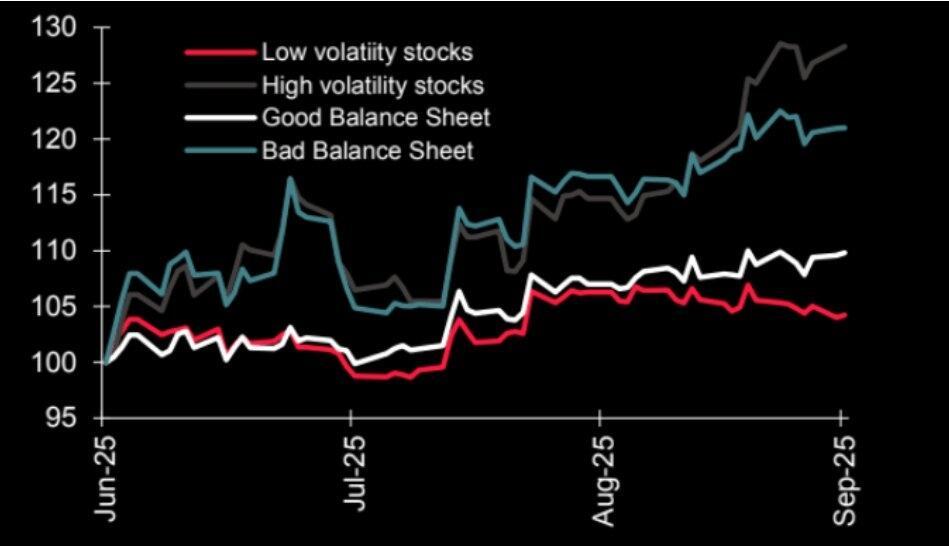 Under normal conditions, valuation metrics drive returns. You buy cheap (low P/S, high free cash flow yield, strong ROE) and wait for mean reversion. But in a speculative bull run, those rules often fail. As discussed recently, high volatility and “bad balance sheet” (poor fundamentals) are what investors are chasing. That is because the perceived risk of loss is extremely low, even though it is not.