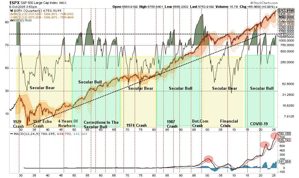 “The critical issue for investors, both then and now, was that many were “right” about the Dot.com bubble. However, they were so early in their warnings that they were wrong in their portfolios. The same warning applies currently. Is there a bubble in AI? Maybe. But, I would even suggest that it is pretty likely. As investors, we must realize that during the “inflation” phase of the bubble, there is a lot of money to be made, but the cycle will eventually end.”