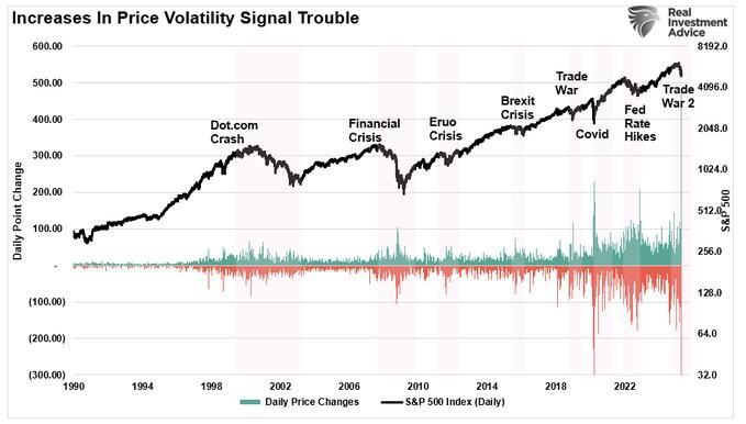 As we discussed previously, volatility begets volatility. Periods of low volatility always lead to high volatility, like now. However, the opposite is also true. The trick is navigating the periods of high volatility well enough to participate in the extended periods of low volatility.