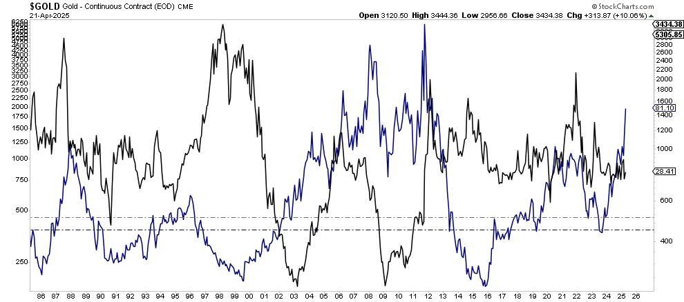 In the financial markets, money is not created or destroyed; it merely changes form. As the old Wall Street adage states, “There is always a bull market somewhere.” In other words, as capital is extracted from one asset, that capital is reinvested into another asset. Eventually, that same flow of capital will reverse, and the asset that rose previously will become a source of liquidity to return to what was sold off. A good recent example of this is Gold versus the S&P 500 index. As shown, there is a very high negative correlation between the 36-month rate of change of the two assets. Simply put, when one rises, it becomes a source of liquidity for the falling asset.