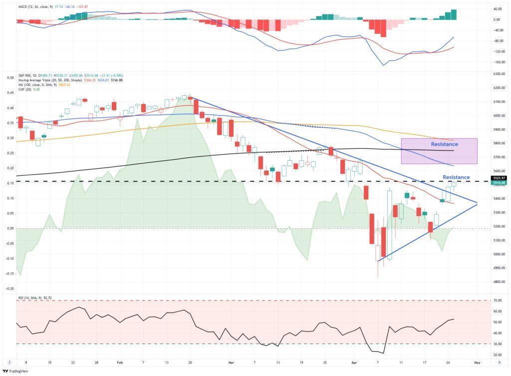 “While the markets await the next Federal Reserve meeting, the uncertainty over monetary policy weighs on markets as much as the uncertainty about tariffs. This past week, the market reversed some of its gains from the massive “tariff reprieve” surge. With the MACD back on a buy signal and money flows turning positive, buyers are tepidly stepping back into the market. The 20-DMA continues to act as overhead resistance, defining the current downtrend. While there is undoubtedly a risk of another test of recent lows, which should be expected and why caution remains advisable, a break above the 20-DMA would lead to a rally to the 50-DMA. (Monday’s article addressed the “Death Cross” and what it means for investors.)“
