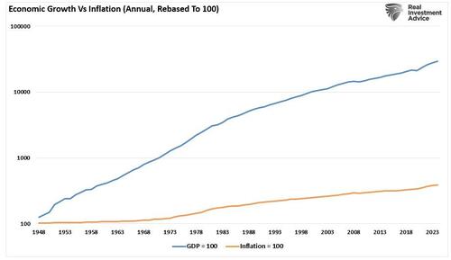 We absolutely agree that investors should invest their “idle” dollars into “risk assets” like bonds, gold, stocks, or Bitcoin to protect their savings from inflation over time. However, the gains in those assets that rise in nominal terms only reflect shifts in relative valuation, not an abandonment of the dollar itself. Furthermore, while those buying into “debasement” fears, mostly due to headlines rather than the facts, seek so‑called “safe havens,” by buying Bitcoin or gold, thinking they are abandoning “fiat” money.