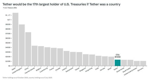 So, what are USD Stablecoins? They are digital tokens designed to maintain a 1:1 peg to the US dollar. Unlike volatile cryptocurrencies such as Bitcoin or Ether, which can swing wildly in price, stablecoins offer price stability by holding reserves of high‑quality liquid assets. The largest examples are Tether’s USDT and Circle’s USDC, which together account for over 90 percent of the USD stablecoin market. For context, as of late 2025, Tether (the issuer of the USDT stablecoin) held over $135 billion in U.S. Treasury securities, ranking it 17th globally among holders of U.S. sovereign debt. Tether’s holdings exceed those of South Korea, Saudi Arabia, Germany, and the UAE.