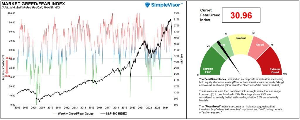 “While readings are not as negative as seen during the 2020 correction or 2008 bear market, current readings are at levels that have also previously confirmed near-term market lows and reflexive rallies. When these readings are combined with the technical readings above, investors are provided with a higher degree of confidence versus non-confirmed readings.”