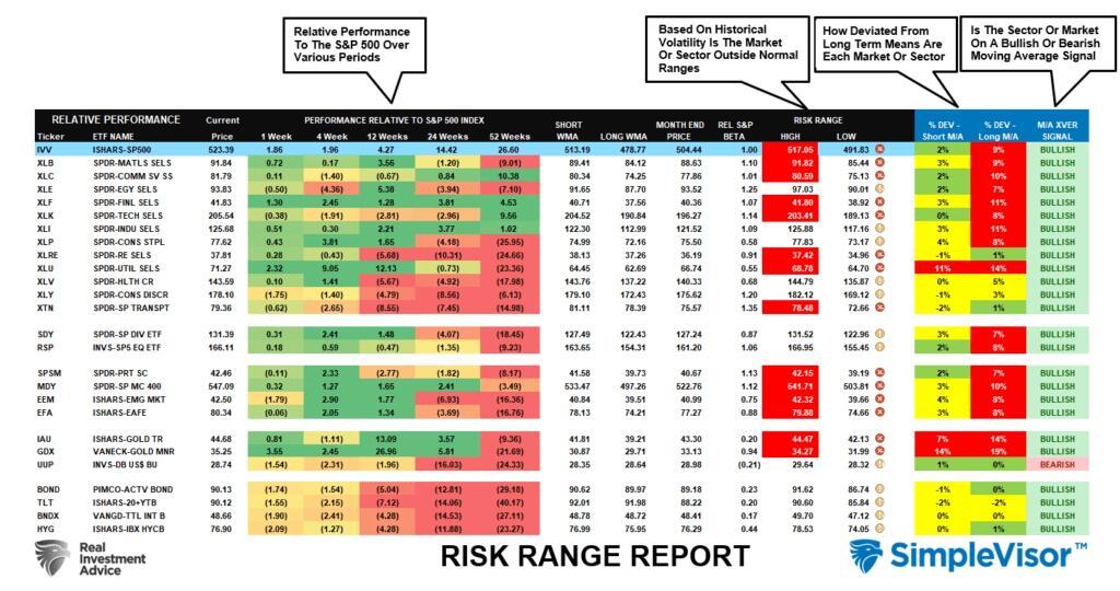 We have produced a weekly “risk range analysis” in the #BullBearReport for several years. That report contains several measures of analysis, as shown below.