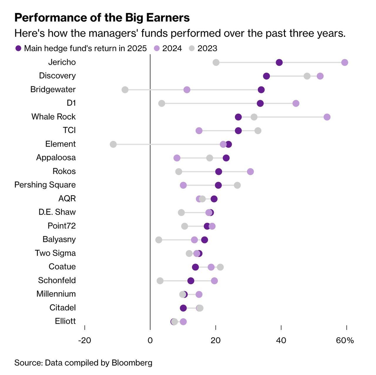The industry’s biggest names enjoyed a banner year overall. The 10 top earners collected about $22 billion between them, and the expanded top-20 list generated $28.3 billion in total compensation. On average, each of the 20 managers made $1.4 billion — the strongest showing in five years and the largest number of billion-dollar payouts yet recorded. Buoyant, volatile equity markets helped drive hedge fund returns to their best levels since 2009.