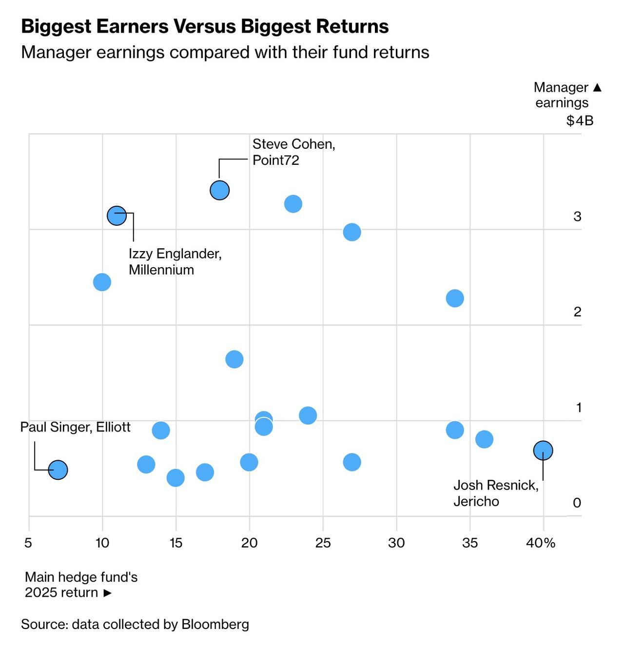 The founder of Point72 Asset Management finished the year as the highest-paid hedge fund manager on Bloomberg’s annual ranking, pocketing an estimated $3.4 billion. That works out to more than $9 million every day — a staggering haul even by Wall Street standards. For the first time since the list began, Cohen sat alone at the top.