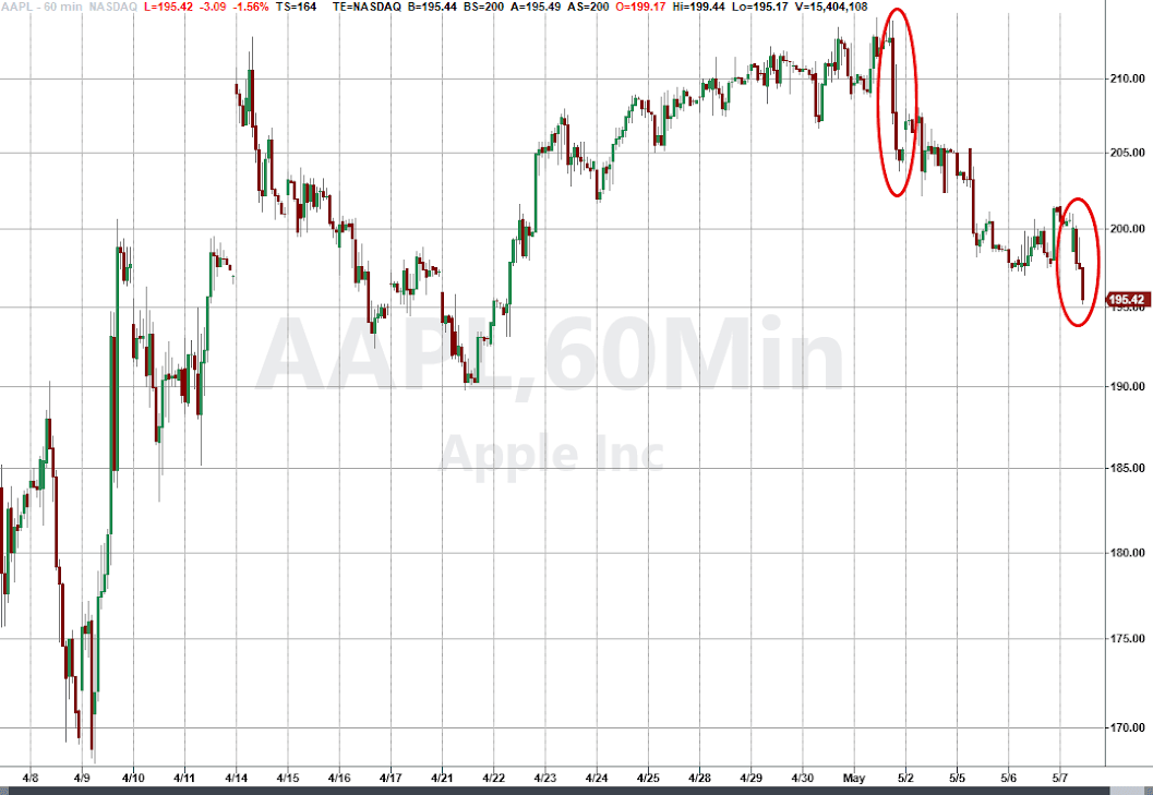 Apple shares fell to a session low of 1.7%.