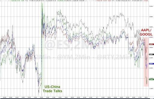 Sliding Apple and Google price action sent US main equity futures lower.