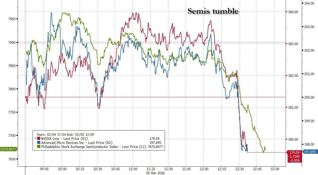 The news promptly sparked a selloff across the semiconductor space, with Nvidia and AMD both tumbling alongside the broader semiconductor space...