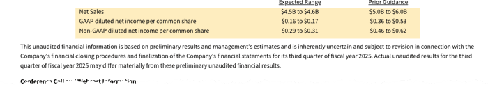 The preannouncement forecasted third-quarter revenue between $4.5 billion and $4.6 billion, with earnings per share of 29 to 31 cents — both well below the prior guidance of $5 billion to $6 billion in revenue and earnings per share of 46 to 62 cents.