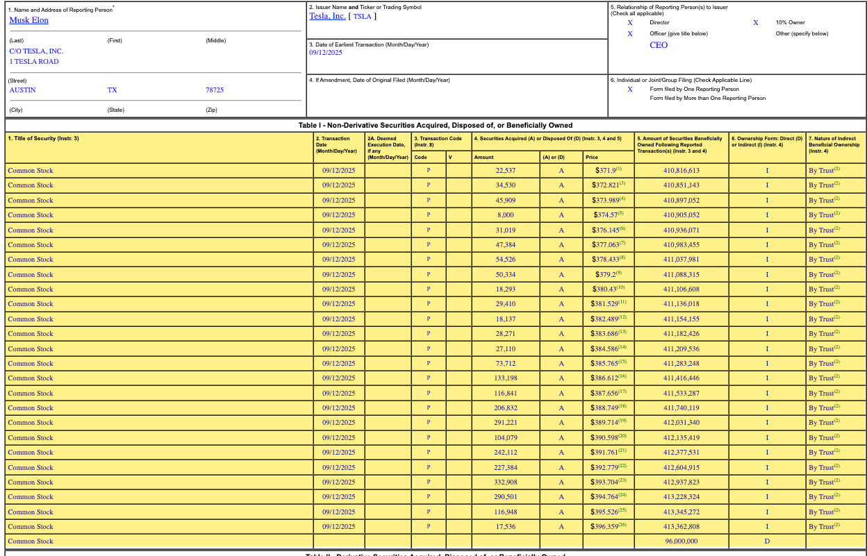 According to a newly filed SEC document, Musk purchased 2.5 million shares through a series of trades valued at about $1 billion.