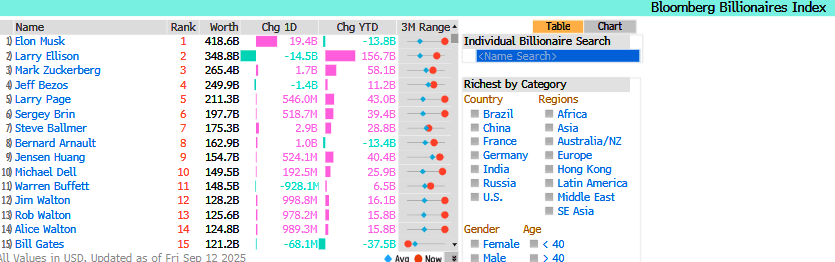Here's the latest from the Bloomberg Billionaire Index (as of Friday's close).