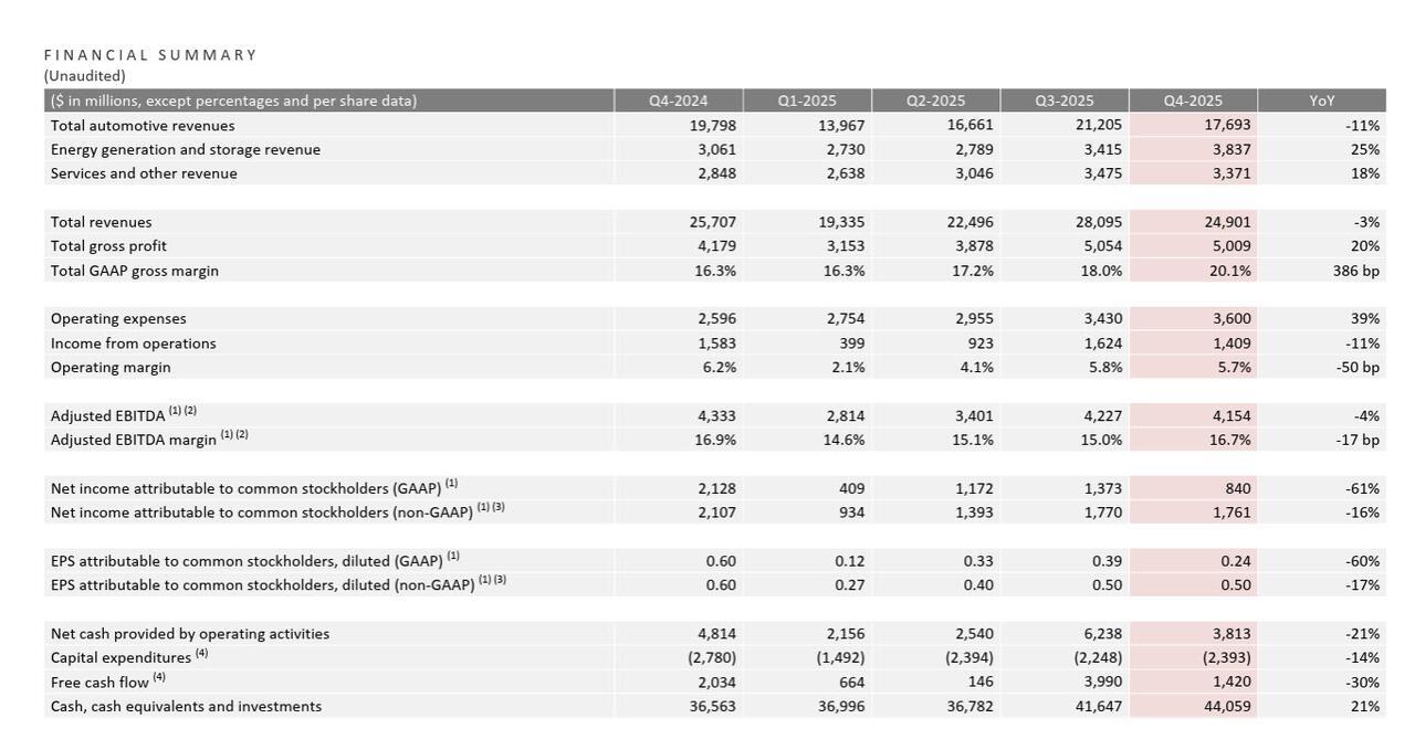 With all that in mind, here is what Tesla reported for Q4 2025: