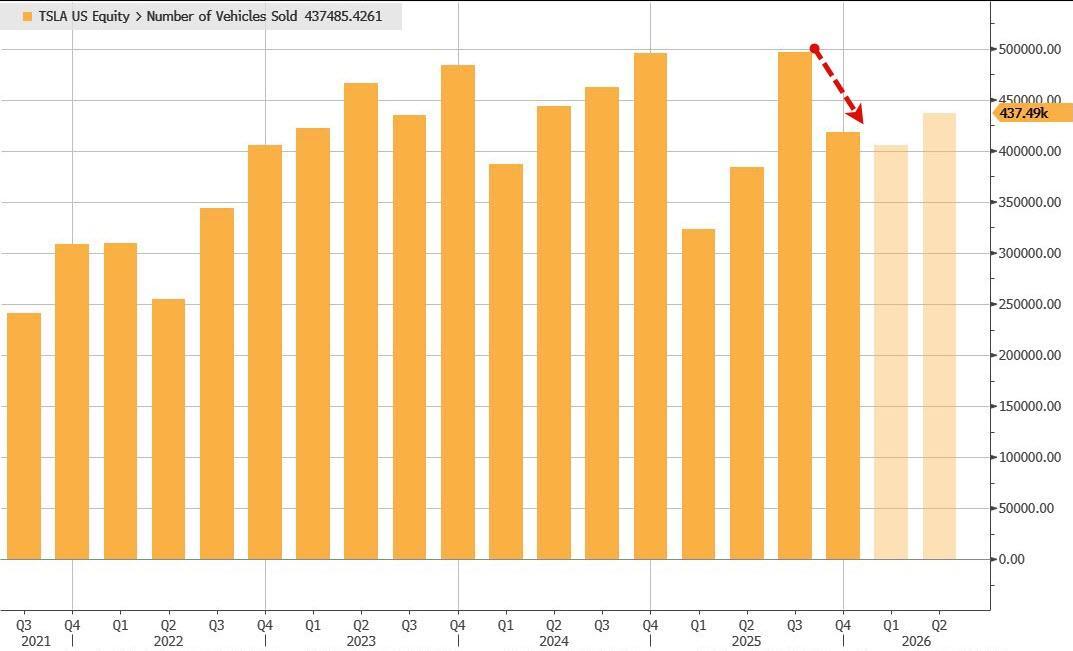It is no secret, that the automotive business remains Tesla’s biggest challenge: vehicle deliveries have fallen sharply in the fourth quarter, and the loss of key tax credits, rising competition, and heavier use of discounts have all weighed on demand and margins. Analysts are closely watching automotive gross margin, excluding regulatory credits, as a measure of Tesla’s true pricing power. Many expect it to come in near 14% to 15%, down from recent quarters. This reflects a reality that Tesla is no longer operating in a wide-open EV market and must now fight harder for every sale.