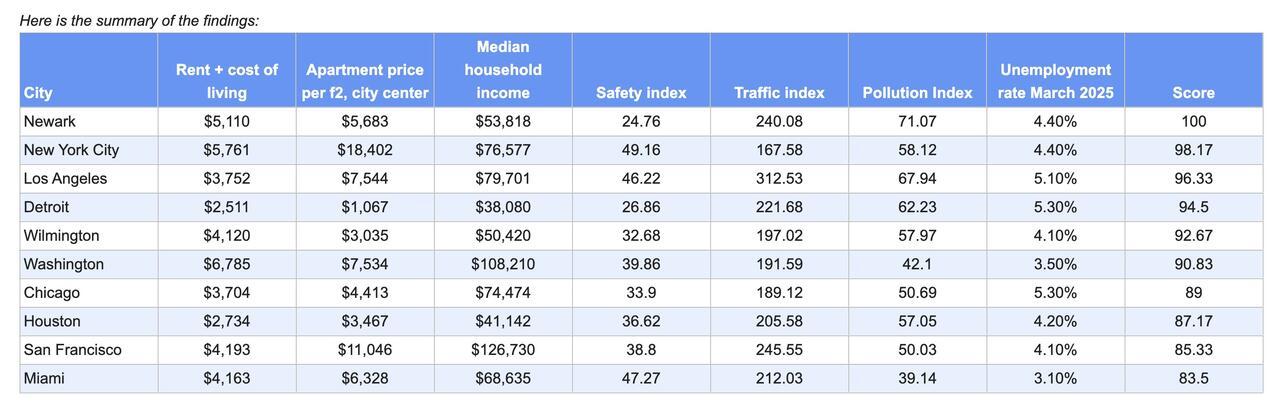 The study analyzed a wide range of metrics — including housing costs, income, safety, traffic, pollution, and unemployment — using data from sources like the U.S. Bureau of Labor and Zillow. The goal? To identify the cities where people are paying a premium and getting a whole lot of hassle in return.