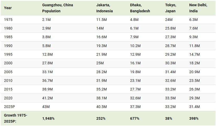 The Rise of the World’s Megacities (1975-2025P)