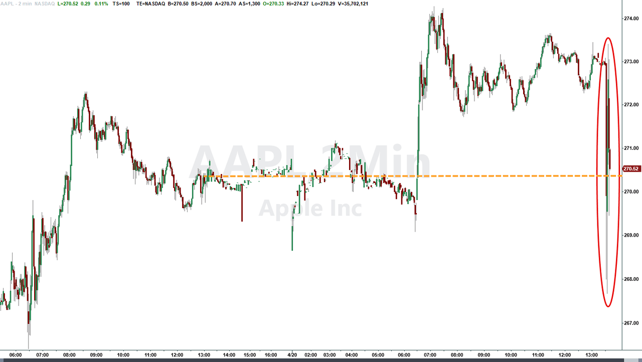 Apple stock dumped on the (widely telegraphed) news, then recovered much of the initial drop.
