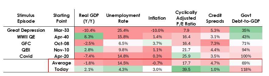 So, QE now would not be a “stimulus into a depression” but rather a “stimulus into a bubble.”