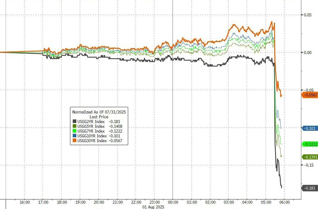 This has helped smash Treasury yields lower with the short-end leading (down a stunning 18bps)...