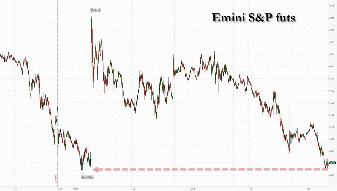 Optimism about the latest deadline extension for Tehran to reach a deal quickly faded as Trump no longer can jawbone market, and as a result S&P 500 futures gave back early gains to trade at session lows as US traders walk in, after Thursday saw the most bruising session for US stocks since the conflict began. Messages about the war remain mixed. Trump again delayed his deadline for Iran to agree to a ceasefire deal or face more attacks, saying talks with Tehran were going “very well”. Meanwhile, the WSJ reported that the Pentagon is looking at sending as many as 10,000 more ground troops to the Middle East. At the same time, Israel said it would escalate and expand its attacks on the Islamic Republic. The conflict has inflicted damage to energy infrastructure across the Gulf and effectively shut a vital artery for oil and gas shipments. Traders fear a broadening impact on energy supplies and oil prices, stoking fears of an inflationary spiral that could force central banks to tighten monetary policy.