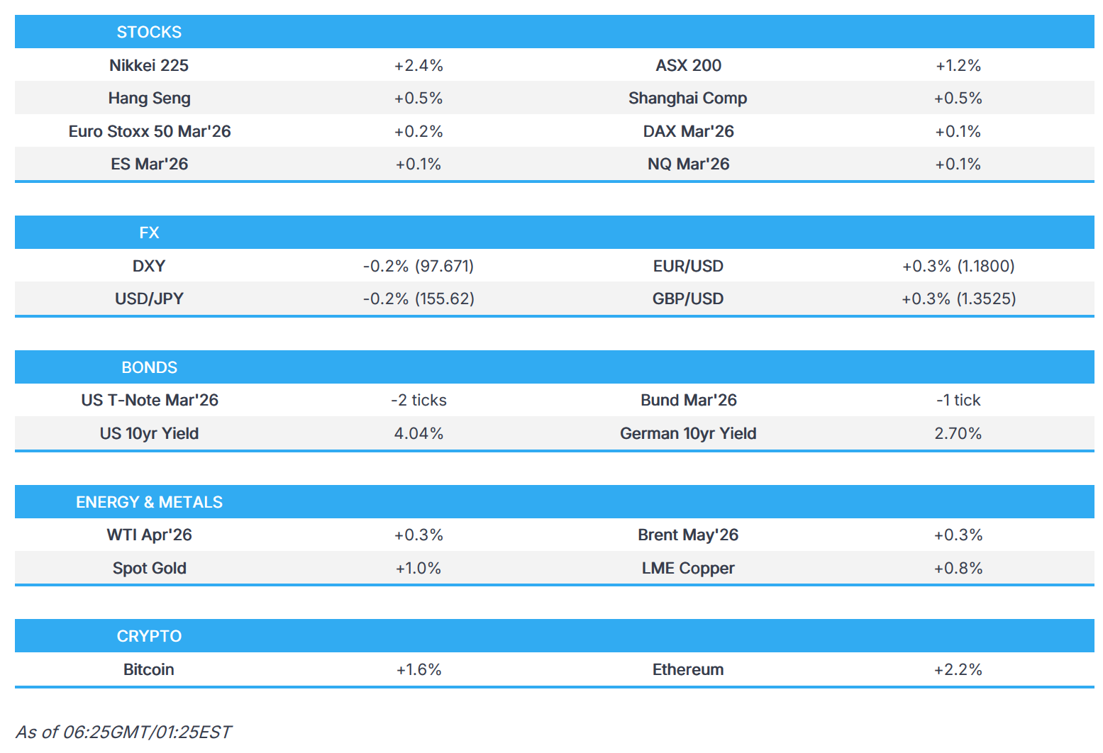 - Looking ahead, highlights include German GfK (Mar), GDP Final (Q4), Swiss Sentiment (Feb), EZ HICP Final (Jan). Speakers include RBA’s Bullock, Fed’s Musalem, Barkin & Schmid. Supply from Germany & US. Earnings from NVIDIA, Salesforce, Snowflake, TJX Companies, Lowe's, Synopsys & Bayer.