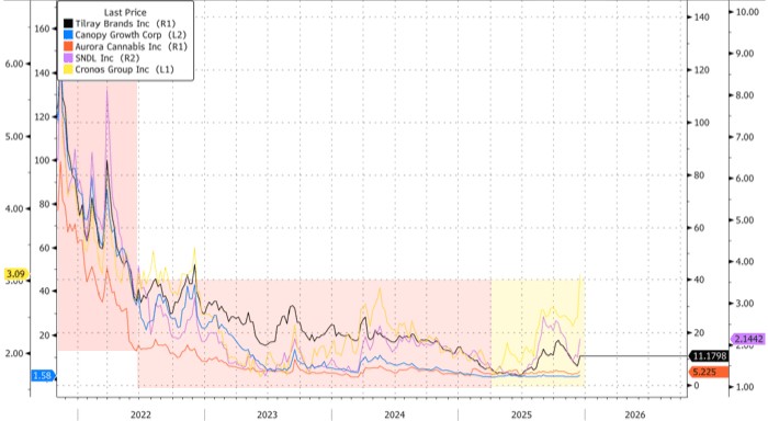 In the markets, Tilray Brands surged 32%, Canopy Growth soared 36%, Aurora Cannabis climbed 14%, SNDL leaped 21%, and Cronos Group advanced 8%.