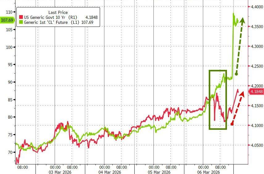 It seems someone tapped the President on the shoulder given this afternoon's explosive opening in futures and he has posted X that spiking oil prices are a "small price to pay" for world peace, adding that prices "will drop rapidly" once the Iran nuclear threat is over.