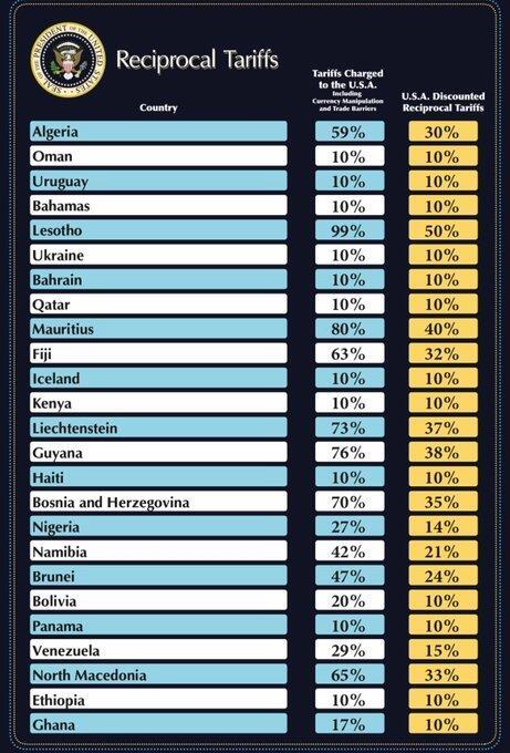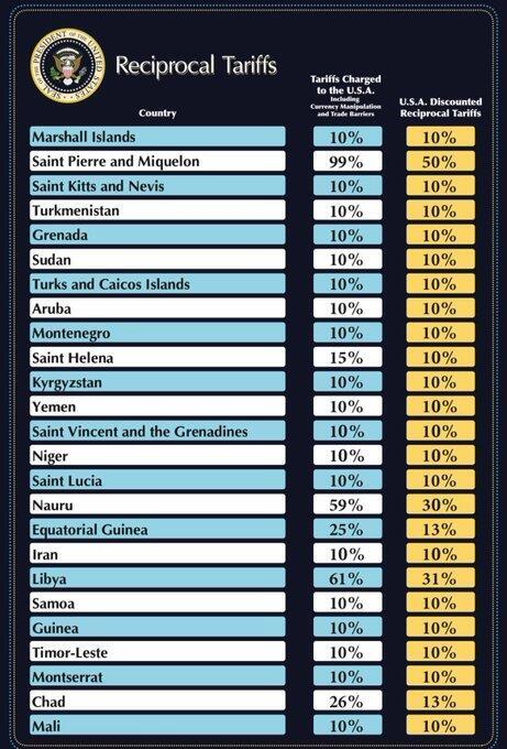 Additionally, Trump said they will not be full reciprocal tariffs, then held a chart up showing the individual nation (trade-weighted average) tariff levels: