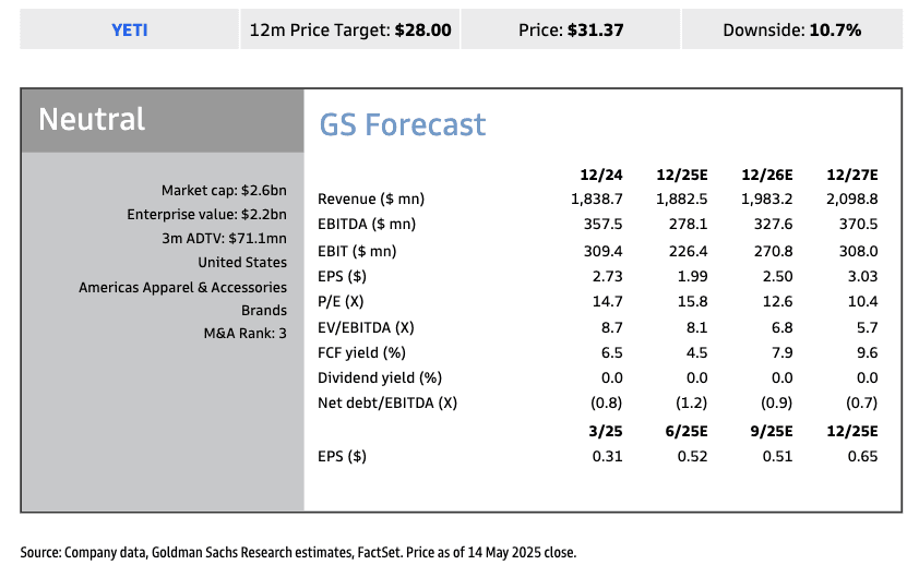 Roach has a "Neutral" rating on YETI shares with a 12-month price target of $28.