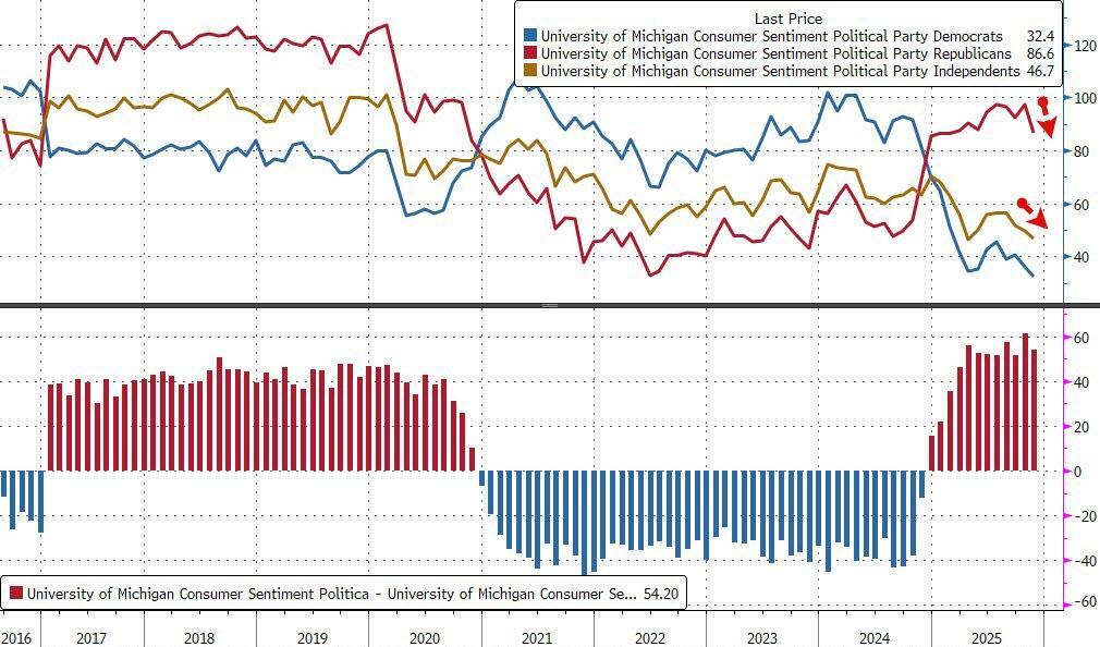 Interestingly, while Democrat's confidence remains vastly worse than the rest of the political cohorts, November saw Republicans and Independents lose some faith too...