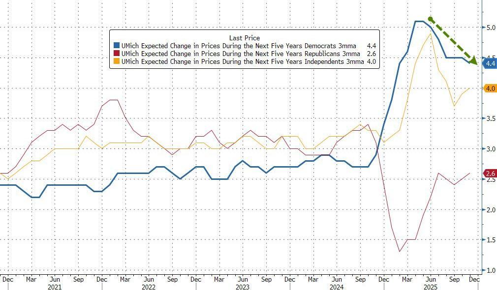 Democrats continue to lead the fear of inflation (though dropped to January lows this month)...