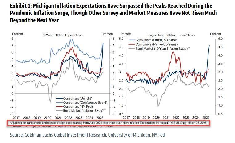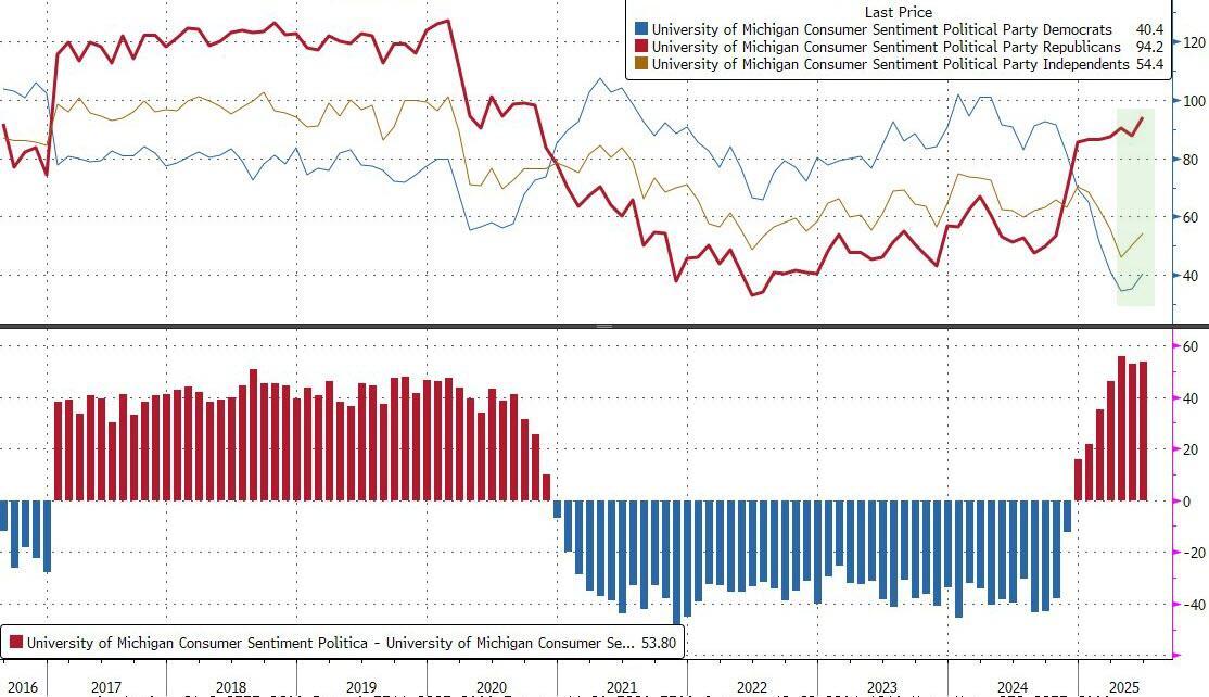 Just days after CPI disappointed the the Trump Tariff infation fear-mongers once again and a month since the UMich survey found that "Women, Democrats, & Low-Income Americans Are Out Of Their TDS-Addled Minds", and one week after Goldman finally called out the idiocy of the UMich survey, slamming its "partisanship" and the "sample design break starting from June 2024"...