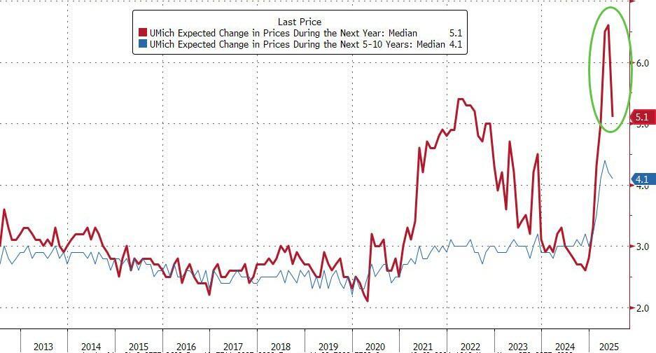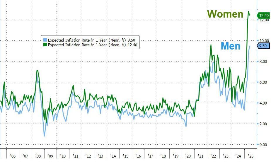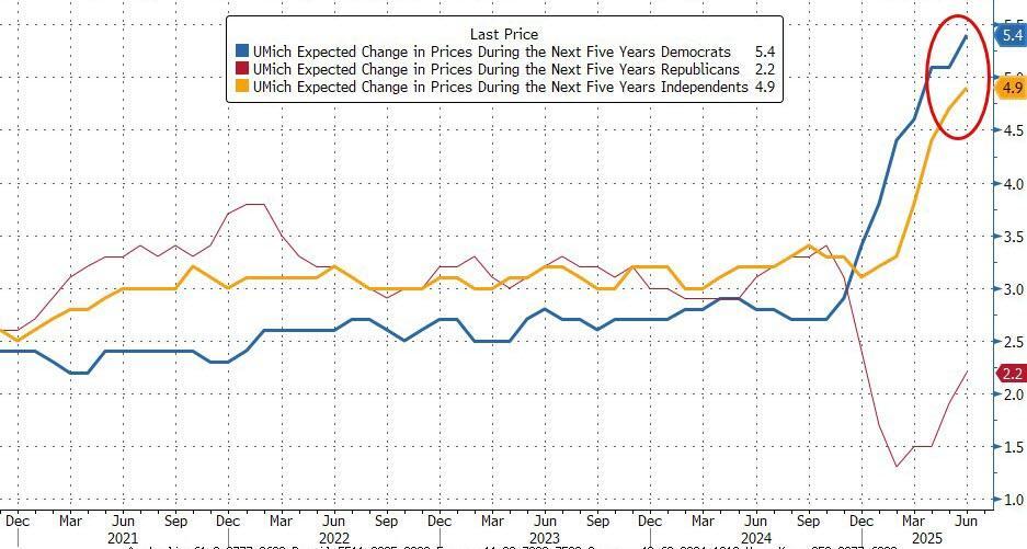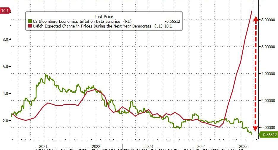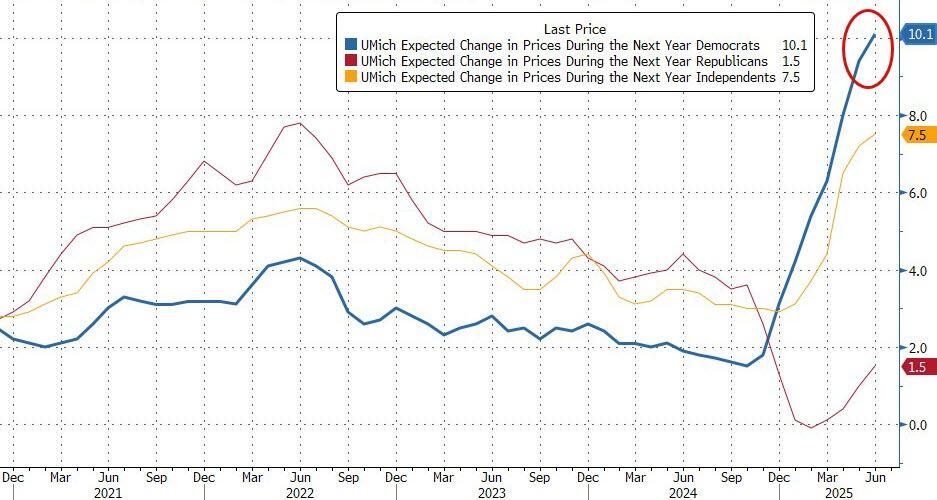 However, 'Tariff Derangement Syndrome', as Treasury Secretary Scott Bessent called it, was very evident as Democrats' inflation expectations surged even higher to a ridiculous 10.1% over the next year!