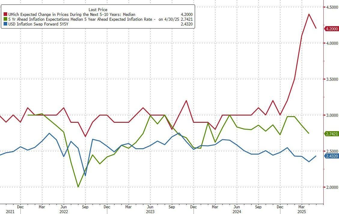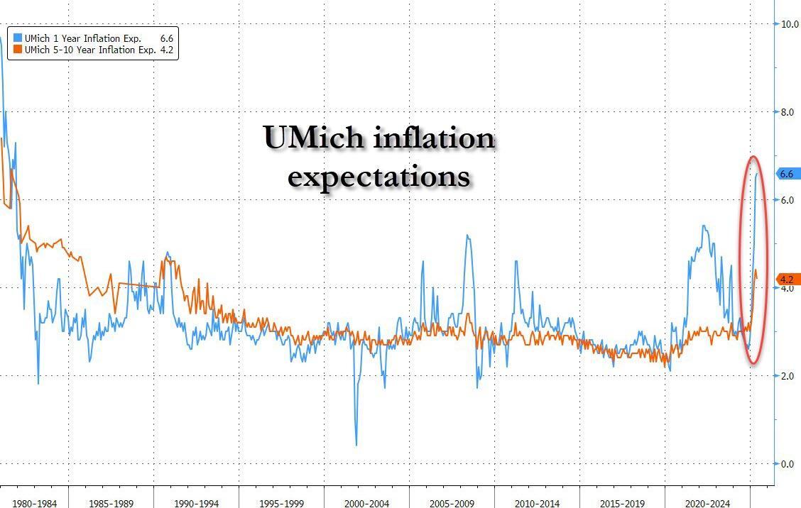 ... not to mention that it has been chronically wrong, warning that "Michigan inflation expectations have already risen even more than in 2022 and this time long-term expectations have risen sharply too, all before tariffs have even meaningfully boosted consumer prices" while "technicalities have exaggerated the increase in the Michigan [inflation] survey, as other survey measures and market-implied inflation compensation have not risen much at horizons beyond the next year", moments ago the final UMich survey for the month of May saw sharp revisions to the prelim prints, to wit: