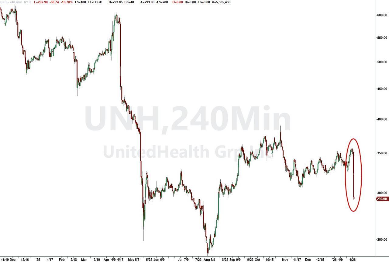 UNH shares were already down about 8% heading into the earnings release. Shares extended losses after the insurer forecasted a decline in 2026 revenue, marking its first annual contraction in more than three decades.