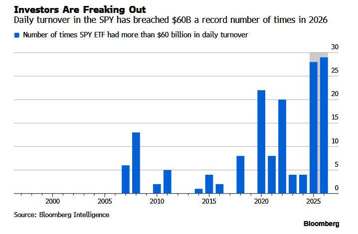 The ceasefire announcement came not long before a deadline Trump had set that threatened a major escalation of the war. “We have now stepped back off the edge of the precipice,” said Aviva’s Richard Saldanha. The rapid twists and turns of the war have led to a record intensity of stock trading, according to a measure of daily SPY ETF turnover.