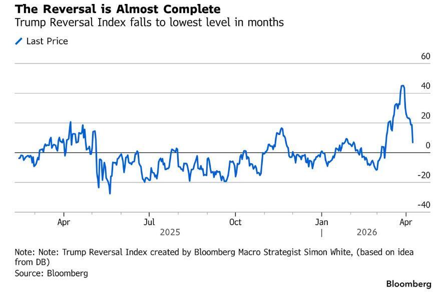 The latest news has left the Trump Reversal Index — a gauge created by Bloomberg strategist Simon White that combines various macro indicators — back to not much higher than where it was before the war started. Light positioning is also fueling Wednesday’s relief rally. Volatility-control funds’ allocations to US equities had recently fallen to 56%, the lowest since July, according to Barclays.