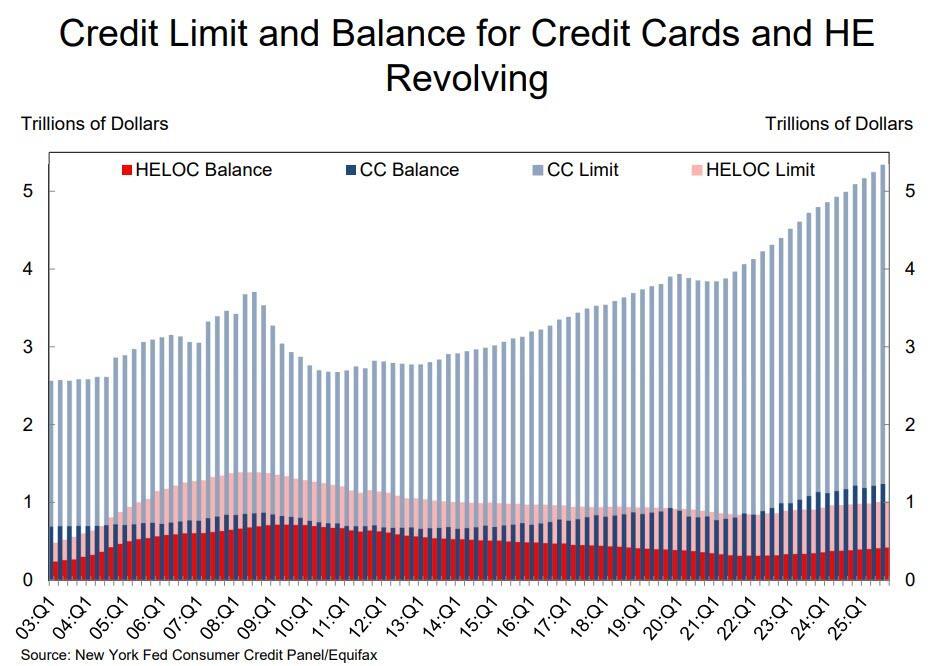 - Aggregate limits on credit card accounts continued to rise by $94 billion, representing a 1.8% increase from the previous quarter.