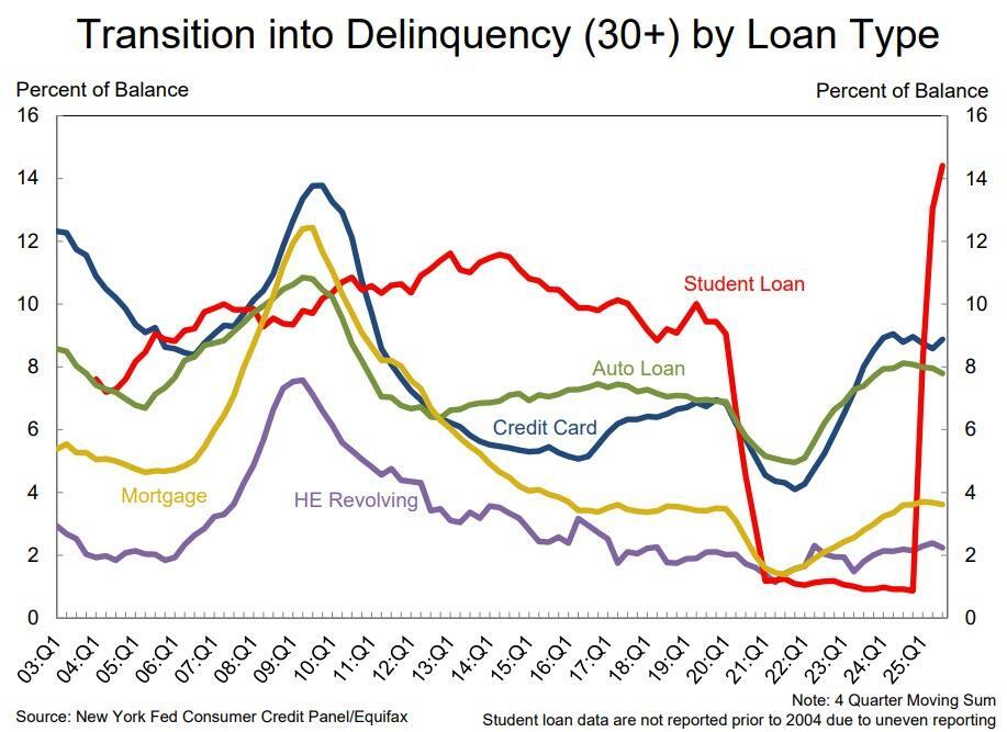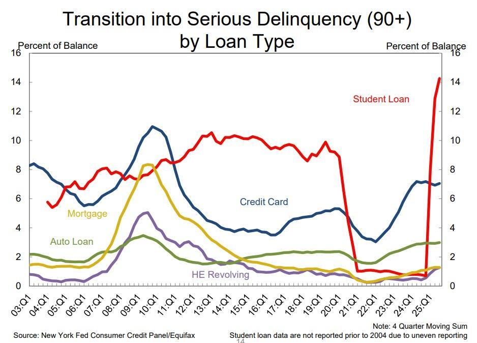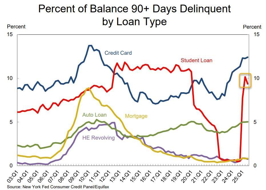 Taking a closer look at the ground zero of the current consumption crisis, namely student Loans, where outstanding debt stood at $1.65 trillion in Q3 2025.